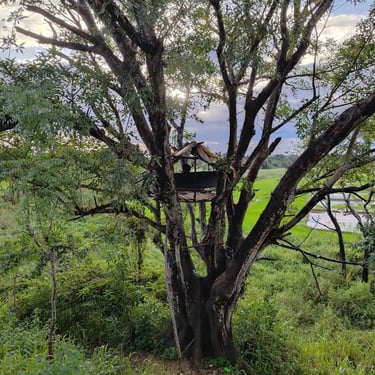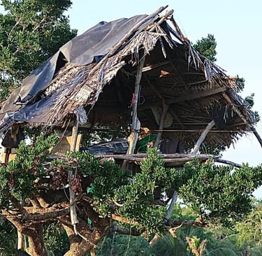 Cette cabane a été construite par les paysans dans les arbres :