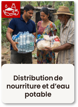 Notre organisation apporte une aide concrète, rapide et efficace aux personnes touchées par des catastrophes :